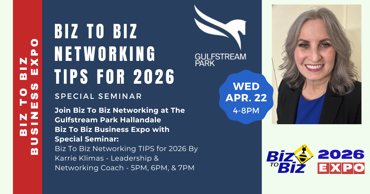 Gulfstream Park Hallandale Beach – Business Expo with Special Seminar: Biz To Biz Networking TIPS for 2026 By Karrie Klimas – Leadership & Networking Coach – FREE SEMINAR