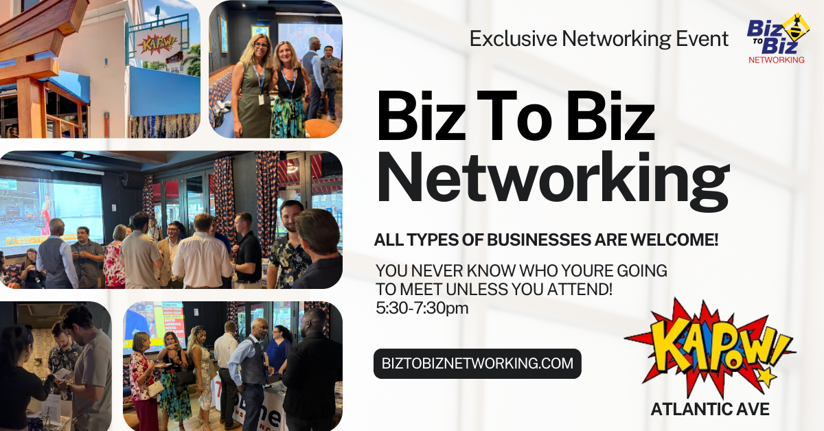 Bring A Friend and Introduce Them To Biz To Biz Networking. You Won’t Want To Miss This Networking Event! Are you wondering if attending a networking event in really worth your time and effort? The answer is a resounding YES. Biz To Biz Networking events are the perfect opportunity to make valuable new connections and grow your business. By attending our events, you can meet like minded professionals from all types of companies. Not only that, but Biz To Biz Networking events are FUN too! So don’t miss out on the incredible opportunity to connect!