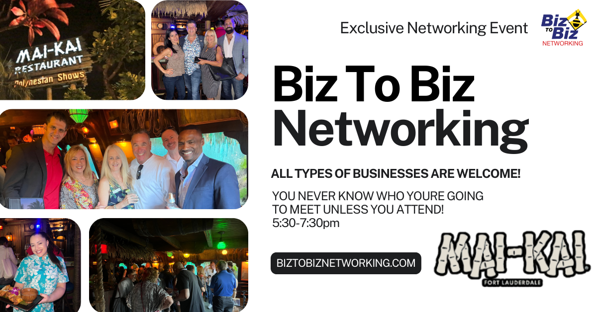 Biz to Biz Networking Invites You To Join us at this amazing location in Boca Raton …a perfect opportunity to make some new connections.