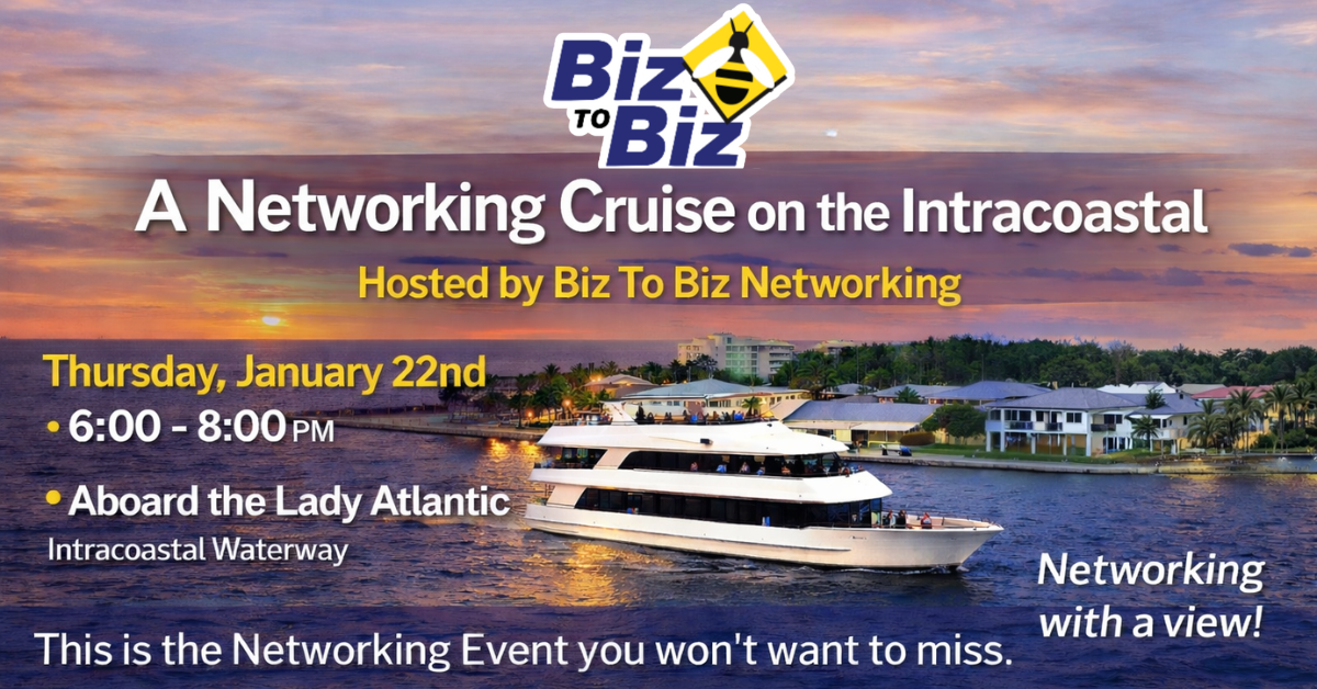 Biz to Biz Networking Invites You To Join us at this one of a kind Networking Event on the Beautiful Lady Atlantic Cruise! …a perfect opportunity to make some new connections while cruising down the Intracoastal!